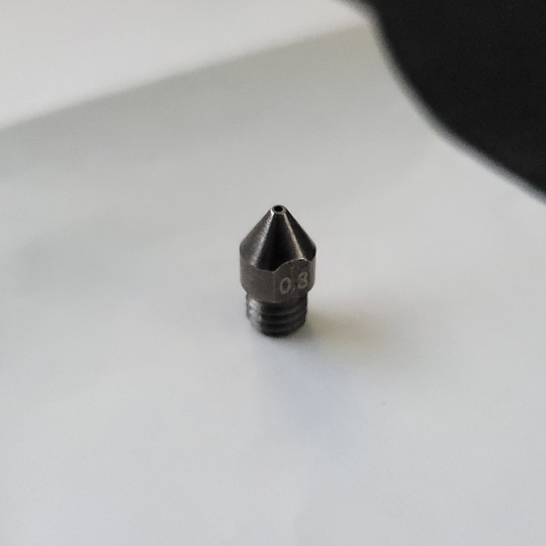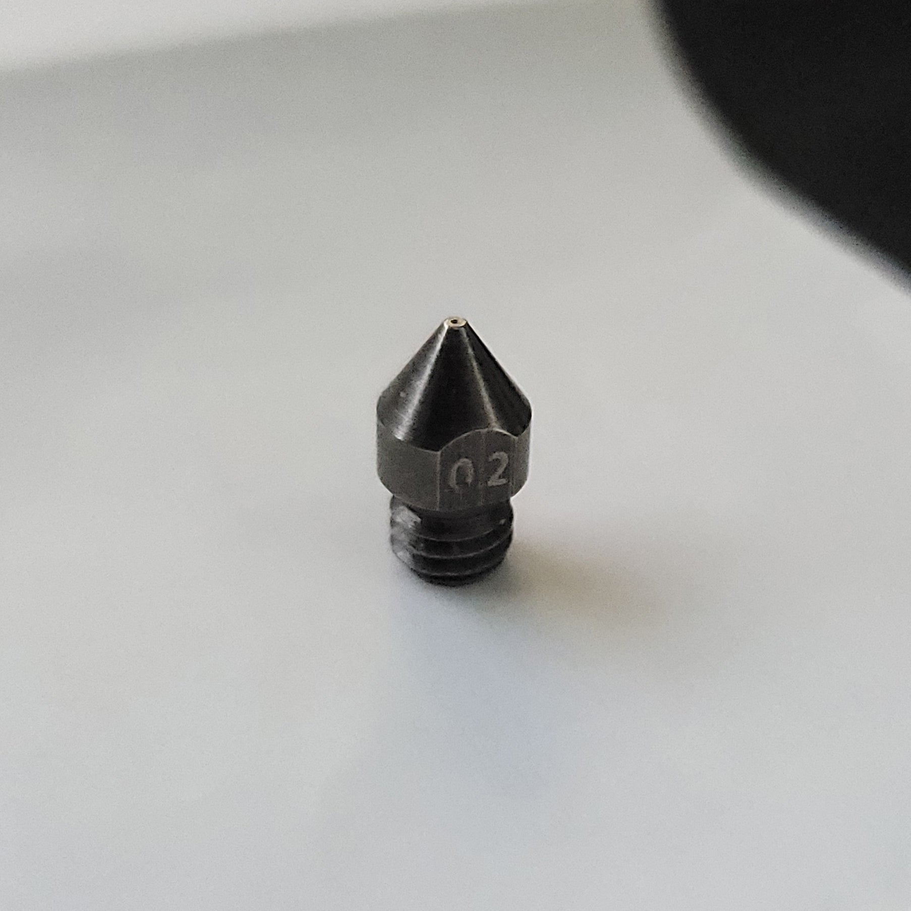 Hardened Steel Nozzles are best for abrasive filaments such as wood, copper/metal infused, marble, and carbon fiber. They are not suited for high speed printing as they don't conduct heat as well as their copper/brass counterparts, a slightly higher printing temperature is recommended than normal when printing with regular filaments.